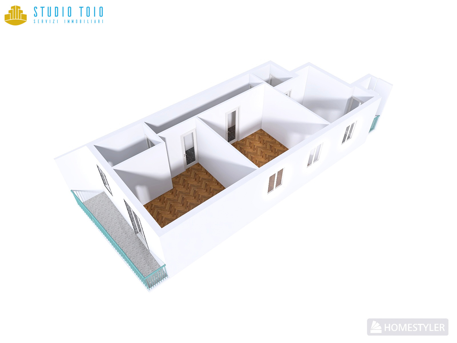 Gli ambienti sono luminosi e i due balconi presenti, uno collegato alla cucina ed uno alla camera da letto, garantiscono sfoghi esterni utili e funzionali.