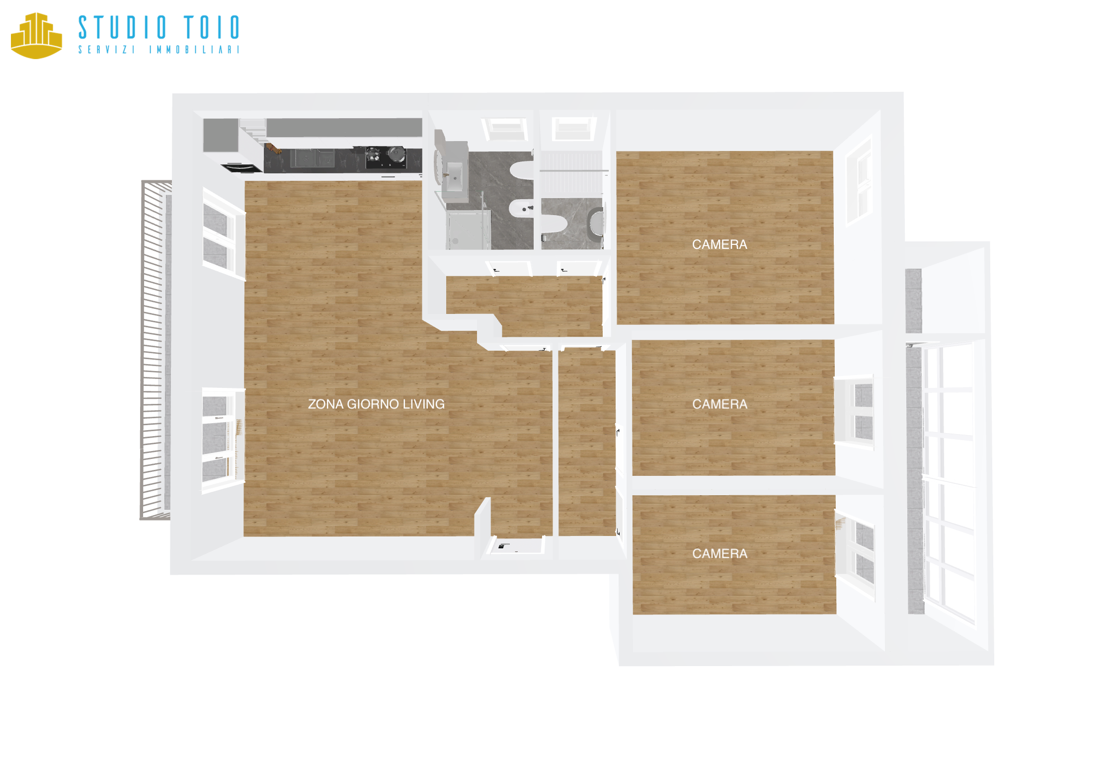 L’alloggio verrà consegnato completamente tinteggiato e completo di cucina su misura inclusa, pronto per essere abitato senza ulteriori interventi.