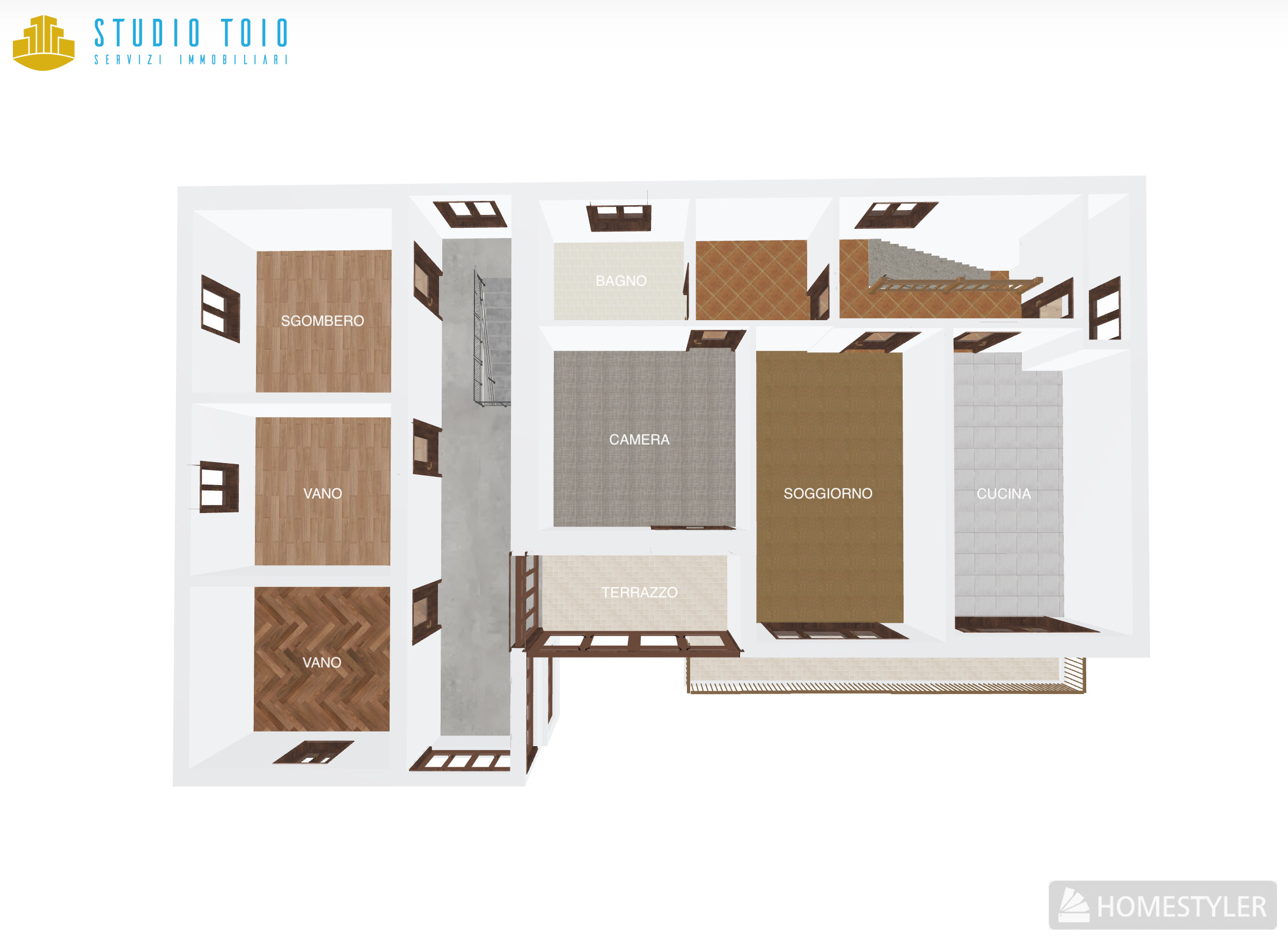 Infine, collegata all’immobile principale, è presente una seconda porzione composta da quattro vani, due locali di sgombero ed un bagno di servizio, il tutto in condizioni originali ma con ottime potenzialità di ristrutturazione, perfetta per ampliare l’abitazione o creare un’ulteriore unità indipendente.
